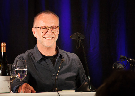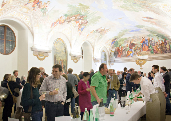 Weinmoderator Wolfgang Schwarz im Gespräch mit Michael Moosbrugger vom Weingut Schloss Gobelsburg.