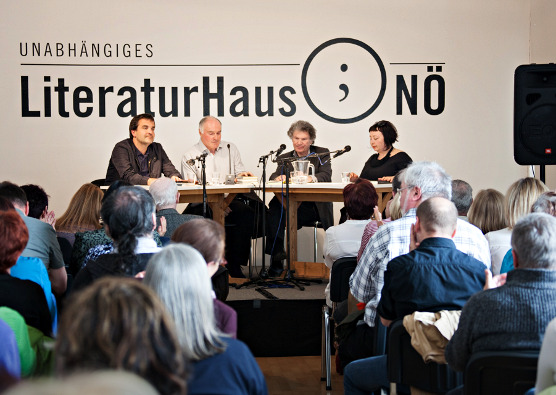 Parallel dazu fand im Literaturhaus NÖ Lesung und Gespräch im Rahmen von Transflair statt. Klaus Zeyringer moderierte die Gäste Julya Rabinowich, Florian Klenk und Fritz Orter.