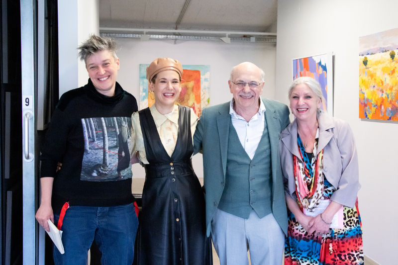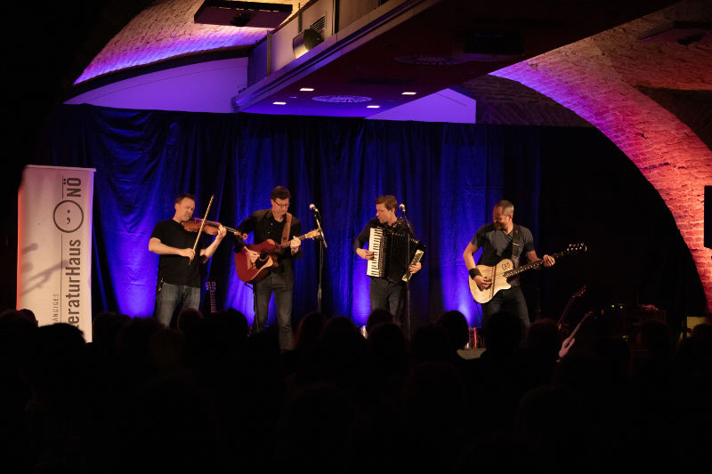 Anja Golob, Kinga Tóth und Gerhard Ruiss mit der Obfrau des Literaturhaus NÖ Sylvia Treudl.