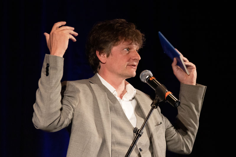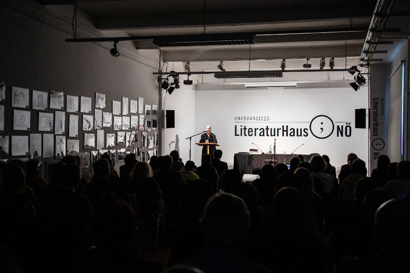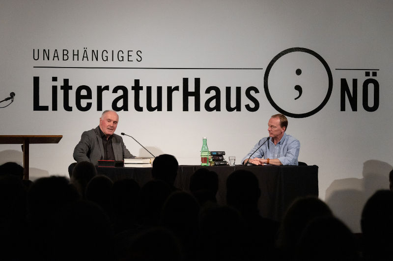 Der Moderator Klaus Zeyringer war am Samstagvormittag im Literaturhaus NÖ 'Im Gespräch' mit Juan Gabriel Vásquez.