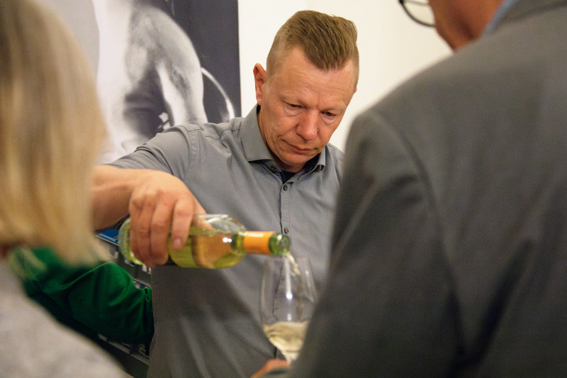 In der Pause verwöhnen die Festivalwinzer:innen unsere Gäste mit auserlesenen Weiß- und Rotweinen; Im Bild: Reinhard Kamauf vom Weingut