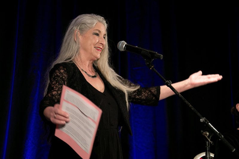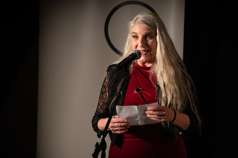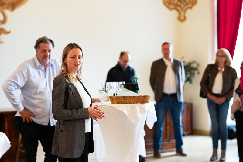 Maria Preyer, Mitarbeiterin des Literaturhaus NÖ, begrüßt die Gäste des Weinalphabets