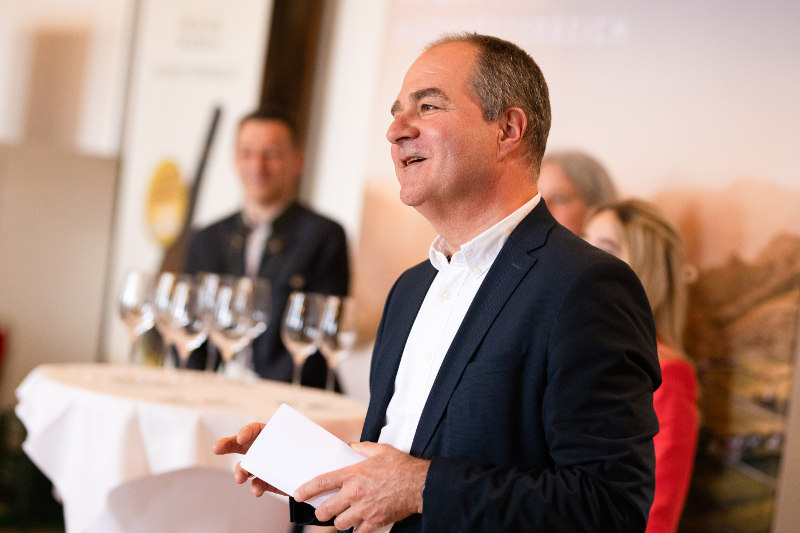 Klaus Goldmann, GF Wein Niederösterreich, begrüßt das Publikum und stellt die diesjährigen Festivalwinzer:innen vor