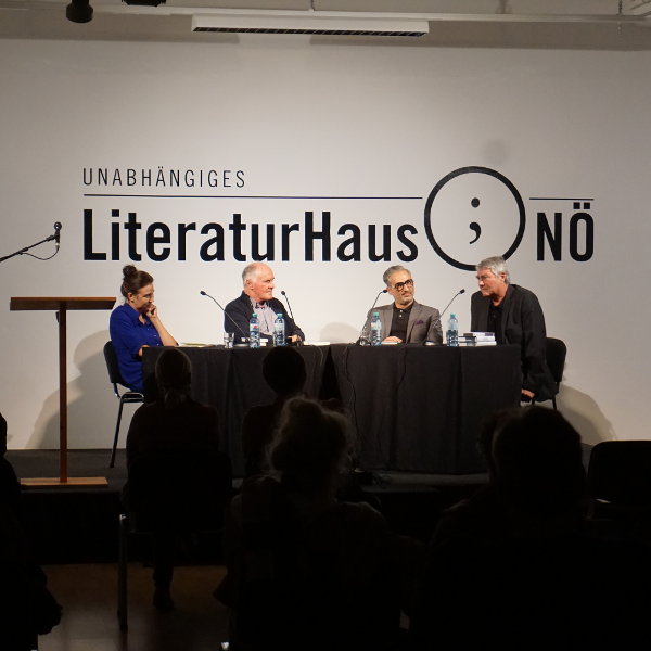 Birgit Birnbacher, Fahim Amir und Kurt Kotrschal bei TransflairNoch vor Coronazeiten haben wir das Bändchen Gesellschaften im Umgang mit der Natur und anderen Außenseitern mit Beiträgen von Fahim Amir, Anna Weidenholzer, Christoph W. Bauer, Stefan Gmünder, Birgit Birnbacher und Sabine Gruber herausgebracht (Edition Aramo). Dazu planten wir eine Folge der Serie "Transflair", mussten sie jedoch wegen der Pandemie sogar mehrmals verschieben. Nun aber saßen Birgit Birnbacher, Fahim Amir und Kurt Kotrschal auf dem Podium.